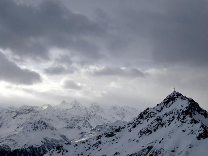 Keywords: montafon clouds summit fog summit cross snow panorama even cloud formation mountain landscape