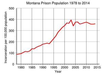 | Keywords: Montana Prison Population.svg en Montana prison incarceration rate per 100 000 population from 1978 to 2014 Data from http //www bjs gov/index cfm ty nps BJS 2016-05-11 own Delphi234 other versions current annually Generated with Wikimedia SVG Chart SVG Chart/box cc-zero Prisons in Montana Imprisonment and detention rates in the United States |