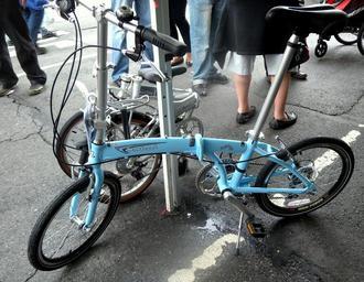Keywords: Montecci folder jeh.jpg en Montecci bike parked at a vendor's stand at a street fair and folded Dahon behind it Folding bicycles 2011-05-15 own Jim henderson 40 45 56 045825 N 73 59 15 068654 W source exif_heading cc-zero Uploaded with UploadWizard