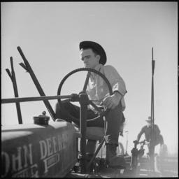 Keywords: Monterey County, California. Rural youth. Mechanization, the agricultural employee. At the wheel of a farm-all tractor - NARA - 532242.tif Scope and content General notes 532242 Local identifier 119-CAL-189 Federal Security Agency National Youth Administration 07/01/1939 - 09/17/1942 NARA-Author Partridge Rondal 1917- Photographer 8464464 <br /> Still Picture Records Section Special Media Archives Services Division NWCS-S National Archives at College Park 8601 Adelphi Road College Park MD 20740-6001 1940-05-02 Record group Record Group 119 Records of the National Youth Administration 1934 - 1945 Record group ARC 448 Study of Youth Photographs compiled 1940 - 1940 Series ARC 532065 File unit File unit ARC Variant control numbers NAIL Control Number NWDNS-119-CAL-189 yes Other versions NARA-cooperation PD-USGov Salinas Valley California Agriculture in California John Deere tractors Steering wheels tractors Males with tractors 1940 in California Rondal Partridge NARA images of Monterey County California Black and white photographs of men California Black and white photographs of California