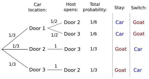 Keywords: Monty tree door1.svg decision tree for the Monty Hall problem Own 2008-04-02 Rick Block Public domain Monty tree door1 revised svg Monty tree door1-tr svg en commons Image Monty tree svg Monty Hall problem