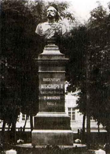 | Keywords: Monument of Aleksandr II. Minsk,1900.png Monument to emperor Alexander II of Russia in Minsk 1901 now Belarus ru Памятник Александ у II в инске Чё ный г анит постамент четы ёхг анная п изма адпись Импе ато у Александ у II Благода ные г аждане го ода инска 1900 год Это был пе вый скульпту ный памятник в инске кото ый появился в го оде в янва е 1901 г У основания памятника асполагались м амо ные столбики соединенные цепью В темное в емя суток он освещался двумя элект ическими фона ями http //www minsk-old-new com/minsk-2715 htm Площадь Свободы Собо ная площадь Author 1901 PD-old Busts of Alexander II of Russia Monuments and memorials in Minsk Busts in Belarus 1901 monuments and memorials 20th-century sculptures in Belarus Black and white photographs of Belarus |