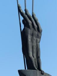 Keywords: monument bronze statue men boot rowing paddle three men in a boat new ulm town hall square sculpture edwin scharff landmark 3 men in a boat