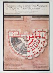 | Keywords: Monument Dedicated to the Exercise of Sovereignty of the People in Primary Assemblies WDL3443.png Artwork Creator Jean-Jacques Lequeu ru онумент посвященный отп авлению ве ховной власти на ода в пе вичных соб аниях fr Monument destiné à l'exercice de la souveraineté du peuple en Assemblées Primaires en Monument Dedicated to the Exercise of Sovereignty of the People in Primary Assemblies zh 纪念人们 主要集会中行使主 的纪念碑 pt Monumento dedicado ao exercício da soberania do povo em assembleias primárias ar نصب تذكاري خاص بممارسة السيادة الشعبية بالجمعيات التأسيسية ru П оект монумента посвященного ве ховной власти на ода был создан ф анцузским художником и п оекти овщиком Жан-Жаком Леке 1757 1826 гг во в емена Ф анцузской еволюции Леке получивший хо ошее об азование как а хитекто и начавший многообещающую ка ье у не смог воплотить свои а хитекту ные замыслы и философские идеи в еальные п оекты кото ые составили бы его славу Леке с его ве ой в науку и елигиозным эклектизмом был человеком своего в емени но к оме того он был фантазе ом и мечтателем известным своей о игинальностью и эксцент ичностью Вдохновленный новой еволюционной э ой он аз аботал несколько п оектов ни один из кото ых ему не удалось заве шить а п оекте полук углого соо ужения Леке в заголовке све ху указана дата 24 июня 1793 г а в п авом нижнем углу - 9 мессидо а вто ой год Республики В попытке полностью уст анить влияние т адиций на жизнь ф анцузского на ода после победы Ф анцузской еволюции был введен новый календа ь в кото ом использовались новые названия месяцев поделенных на т и десятидневные декады 9 мессидо а означает девятый день месяца мессидо а пе вого летнего месяца названного по латинскому слову messis означающему жатва Летосчисление начиналось со дня п овозглашения Ф анцузской Республики в сентяб е 1792 года аполеон уп азднил эту систему и восстановил г иго ианский календа ь вступивший в силу с 1 янва я 1806 г <br>Ф анция ациональное соб ание; Ф анцузская еволюция; Памятники и мемо иалы fr Ce croquis d un monument destiné à l'exercice de la souveraineté du peuple fut dessiné par l artiste et créateur français Jean-Jacques Lequeu 1757-1826 lors de la Révolution française Après une solide formation d architecte et un début de carrière prometteur Jean-Jacques Lequeu n est pas parvenu à canaliser ses idées architecturales et philosophiques dans des projets concrets qui lui auraient assuré la célébrité Lequeu était un homme de son temps par sa foi dans la science et son éclectisme religieux mais il était aussi un visionnaire tourmenté connu pour être marginal et excentrique Il a conçu divers projets d inspiration révolutionnaire pour une ère nouvelle mais n a réussi à en réaliser aucun Le croquis semi-circulaire de Lequeu est daté dans le titre au-dessus du dessin du 24 juin 1793 et du 9 messidor de l an II de la République dans le coin en bas à droite Dans son effort pour éliminer l influence de la tradition sur la vie française la Révolution française avait institué un nouveau calendrier qui comportait des mois rebaptisés divisés en trois semaines de dix jours Le 9 messidor correspond au neuvième jour du mois messidor le premier de l été qui tire son nom du mot latin <em>messis</em> signifiant<em> récolte </em> On commença à compter les années à partir de la proclamation de la République française en septembre 1792 Napoléon abolit ce système et restaura le calendrier grégorien à compter du 1er janvier 1806 <br>France Convention nationale; Révolution française; Monuments et mémoriaux en This design for a monument to popular sovereignty was produced by the French artist and designer Jean Jacques Lequeu 1757 1826 at the time of the French Revolution After gaining a solid education as an architect and making a promising start to his career Lequeu failed to channel his architectural and philosophical ideas into concrete projects that would ensure him fame Lequeu was a man of his times in his faith in science and his religious eclecticism but he was also a troubled visionary known to be unorthodox and eccentric He designed several projects that were inspired by the new revolutionary era none of which he managed to complete Lequeu s semicircular design is dated in the title above the design June 24 1793 and in the lower right-hand corner Messidor 9 Second Year of the Republic In its efforts to eliminate traditional influences from French life the French Revolution instituted a new calendar that featured a set of renamed months divided into three ten-day weeks Messidor 9 refers to the ninth day of the month of Messidor the first month of the summer named after the Latin word messis meaning harvest Years were numb