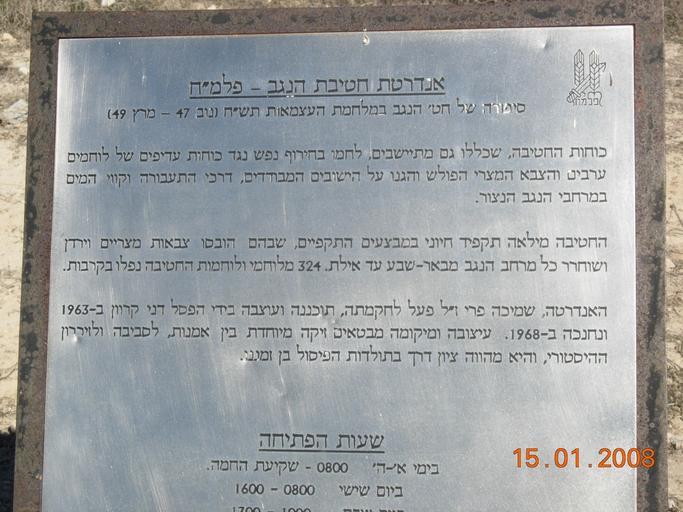 Keywords: Monument to the Negev Brigade3.JPG Monument_to_the_Negev_Brigade3 Own 2008-01-15 Yoavd Monument to the Negev Brigade