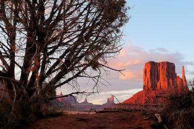 Keywords: monument valley evening sunset tree rocks red color landscape nature