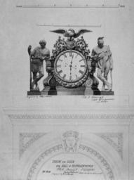 | Keywords: MonumentalClockDesign.jpg en Design for Clock for Hall of Representatives 1858 Photo ink and water color on paper Source Office of the Architect of the Capitol Joseph A Bailly designed the clock and carved the wooden case; William Henry Rinehart designed the bronze figures of the Pioneer and the Indian; the bronze eagle was cast by Archer Warner Miskey Company; Bembe Kimbel constructed the clock The whole was gilded Removed from the House of Representatives 1950; now on display in the U S Capitol's Crypt U S Capitol Architect of the Capitol Library of Congress http //www loc gov/exhibits/us capitol/kkfive jpg Creator William Henry Rinehart 1858 PD-USGov Designs for the United States Capitol Images of the Architect of the Capitol William Henry Rinehart Joseph A Bailly Kimbel and Cabus |