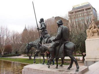 | Keywords: Monumento a Cervantes (Madrid) 10j.jpg Statues of Don Quixote and Sancho Panza Estatuas de Don Quijote y Sancho Panza 1930 bronze Monument to Cervantes at Plaza de España square in Madrid Spain Monumento al Cervantes Placo de Hispanio en Madrido Hispanio Monumento a Cervantes de la Plaza de España de Madrid España MarÃa del Socorro Salvador Prieto Escultura monumental en Madrid calles plazas y jardines públicos 1875 “1936 1990 ISBN 84-381-0147-X object history credit line accession number en wikipedia Eglez1967 2004-03-27 Eglez1967 other versions Statues of Don Quixote and Sancho Panza Monument to Miguel de Cervantes Madrid |