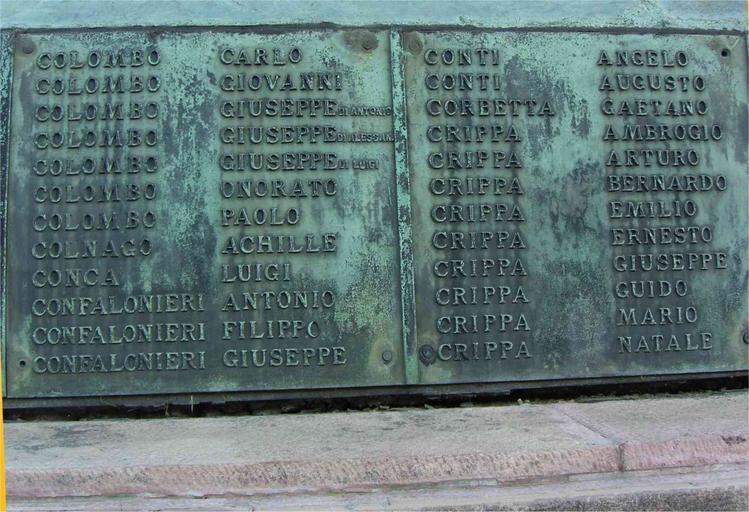 | Keywords: Monza-caduti-prima-guerra-CO-CR.jpg it MB Monza monumento ai caduti lato B - elenco caduti della prima guerra mondiale CO - CR own Albertomos 2009-10-16 nessuna COLOMBO CARLO COLOMBO GIOVANNI COLOMBO GIUSEPPE di Antonio COLOMBO GIUSEPPE di Alessandro COLOMBO GIUSEPPE di Luigi COLOMBO ONORATO COLOMBO PAOLO COLNAGO ACHILLE CONCA LUIGI CONFALONIERI ANTONIO CONFALONIERI FILIPPO CONFALONIERI GIUSEPPE CONTI ANGELO CONTI AUGUSTO CORBETTA GAETANO CRIPPA AMBROGIO CRIPPA ARTURO CRIPPA BERNARDO CRIPPA EMILIO CRIPPA ERNESTO CRIPPA GIUSEPPE CRIPPA GUIDO CRIPPA MARIO CRIPPA NATALE ImageNote 1 52 72 806 733 1611 1101 2 COLOMBO CARLO COLOMBO GIOVANNI COLOMBO GIUSEPPE di Antonio COLOMBO GIUSEPPE di Alessandro COLOMBO GIUSEPPE di Luigi COLOMBO ONORATO COLOMBO PAOLO COLNAGO ACHILLE CONCA LUIGI CONFALONIERI ANTONIO CONFALONIERI FILIPPO CONFALONIERI GIUSEPPE ImageNoteEnd 1 ImageNote 2 896 81 695 713 1611 1101 2 CONTI ANGELO CONTI AUGUSTO CORBETTA GAETANO CRIPPA AMBROGIO CRIPPA ARTURO CRIPPA BERNARDO CRIPPA EMILIO CRIPPA ERNESTO CRIPPA GIUSEPPE CRIPPA GUIDO CRIPPA MARIO CRIPPA NATALE ImageNoteEnd 2 Caduti I guerra mondiale Monza - lato B |