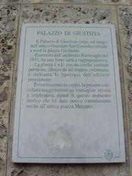 Keywords: Monza-palazzo-di-Giustizia-targa.jpg it MB Monza targa turistica del palazzo di Giustizia own Albertomos 2009-10-23 nessuna ImageNote 1 190 218 865 846 1224 1632 2 PALAZZO DI GIUSTIZIA Il Palazzo di Giustizia sorge sul luogo dell ™antico Ospedale San Gerardo e chiude a nord la piazza Garibaldi costruito dall ™architetto Bartesaghi nel 1931 ha una forte carica rappresentativa La pianta è a U con un cortile centrale porticato chiuso da un doppio colonnato e richiama la tipologia dell'edificio preesistente Il rivestimento in ceppo la pesante cancellata suggeriscono un ™immagine severa e celebrativa tipica di questo momento storico che ha dato nuova connotazione anche all ™antica piazza Mercato ImageNoteEnd 1 Tourist signs in Monza Palazzo di Giustizia Monza 00 Piazza Garibaldi Monza 00 Monza in the 1930s