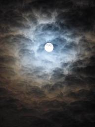 Keywords: moon blurry clouds blue bright yellow ghostly