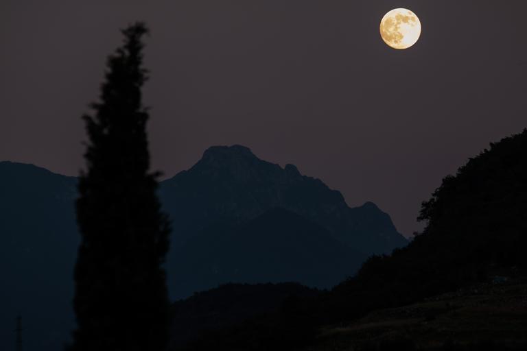 Keywords: moon cypress mountains full moon romantic night evening twilight almost night