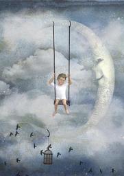 Keywords: moon dream fairy tales sky night clouds mystical atmosphere mood atmospheric fly swing evening sky fantasy birds cage boy child fairytale man in the moon star legendary night sky