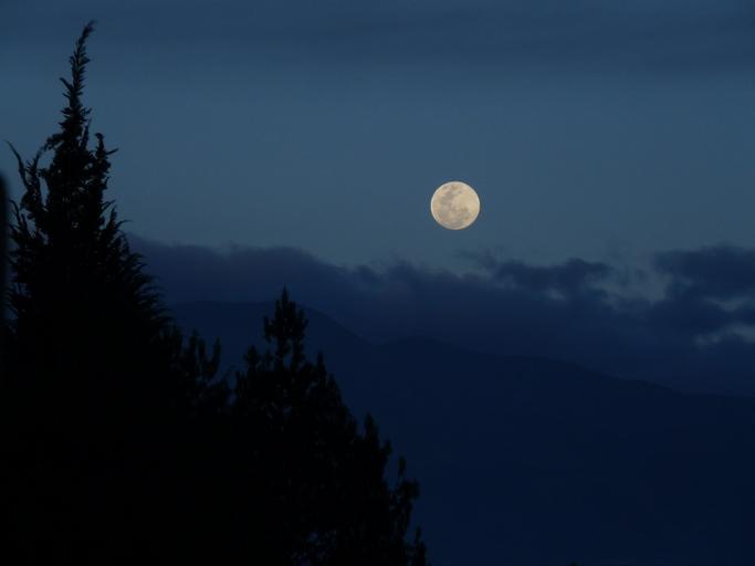 Keywords: moon nature landscape sunset mountains blue outdoors trees night