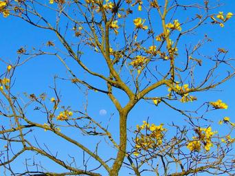 Keywords: moon sky yellow ipê farm reflection tree the moon by day moon between tree space beautiful yellow spring flowers floral