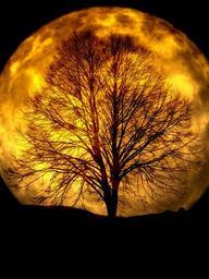 Keywords: moon tree kahl silhouette background night evening atmosphere mood moonlight