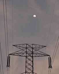 Keywords: moonrise moon electric pylon electric tower mountains shimoga karnataka india