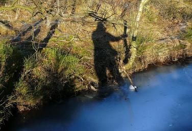 Keywords: moor lake pond waters water shadow human light hispanic shadow play person silhouette spirit ghost fig mystical shadow figure nature road branches frost cold frozen tree branch