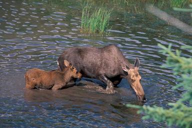 Keywords: moose cow baby water wildlife forest park national landscape female game nature drink outdoors