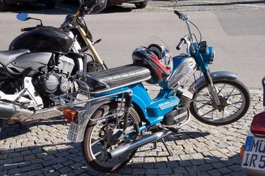 Keywords: moped zündapp two wheeled vehicle blue helm