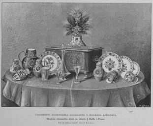 | Keywords: Moravian decorated chinaware from Jan Neff wholesale 1887 Koerber.jpg Decorated Moravian chinaware from the business of Jan Neff 1832 - 1905 Czech wholesaler and philanthropist http //archiv ucl cas cz/index php path ZlataPrahaII/4 1886-1887/8/121 png Zlatá Praha year 1886-87 issue 8 digitized by Czech Academy of Sciences 1887-01-14 Pavel Körber 1862 - 1925 PD-old Pavel Körber Zlatá Praha Porcelain tableware Pottery Jan Neff | ||||