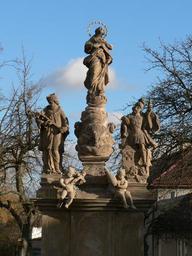 Keywords: MoravicanySousosiDetail.jpg 45455/8-1060 cs Barokní sousoší Panny Marie svatého Floriána a svatého Jana Nepomuckého z poloviny 18 století Moravičany Own Martin Vavřík 2008-12-06 Cultural monuments in Moravičany Statues in Šumperk District