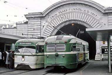 MAKE A MEME View Large Image West Portal of Twin Peaks Tunnel in San Francisco, CA on August 24, 1967. Look at the poles on 1129. I'm guessing, given what Roger said the roll sign read, it is about to be wyed. 1160, a M OCEAN VIEW BROAD TO PLYMOUTH and 1129, a M OCEAN ...