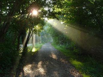 Keywords: Morgensonne im Maudacher Bruch 01.jpg en Maudacher Bruch own Immanuel Giel 2010-09 Maudacher Bruch Sunlight through trees