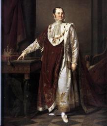 | Keywords: Moritz Kellerhoven, König Max I. von Bayern.jpg Artwork de König Max I von Bayern 1806 oil unknown own Author Joachim Specht Date 18 01 2010 own scan from own old print of oil painting from 1806 other versions Moritz Kellerhoven 19th-century portrait paintings location missing 1806 Maximilian I Joseph of Bavaria 1806 1806 portrait paintings from Germany Male 19th-century oil portraits of standing men at full length in ceremonial robes 1806 Bavarian royal crown in art Columns in portrait paintings 1806 Ermine clothing in art Portrait paintings of men with crowns on cushions 1806 Portrait paintings of standing men with hands resting on tables 1806 Red drapery in portrait paintings 1806 Royal mantles in portrait paintings 1806 |