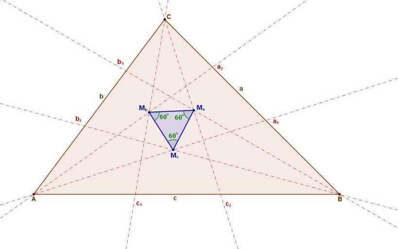 Keywords: Morley theorem.JPG en Morley theorem ΔABC a b c “ sides a<sub>1</sub> a<sub>2</sub> b<sub>1</sub> b<sub>2</sub> c<sub>1</sub> c<sub>2</sub> - angle trisectors ΔM<sub>a</sub>M<sub>b</sub>M<sub>c</sub> “ Morley triangle is equilateral cs Morleyova vÄ›ta ΔABC a b c “ strany a<sub>1</sub> a<sub>2</sub> b<sub>1</sub> b<sub>2</sub> c<sub>1</sub> c<sub>2</sub> “ trisekce vnitÅ™nÃch úhlů ΔM<sub>a</sub>M<sub>b</sub>M<sub>c</sub> “ Morleyův trojúhelnÃk je rovnostranný own Lukas Sova 01/04/2009 Morley theorem |