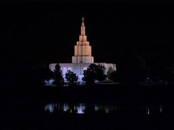 Keywords: mormon temple building night idaho falls city idaho usa religion architecture church