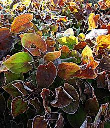Keywords: morning hour epimedium fairy flower shrub leaves ripe ice deposition frost march