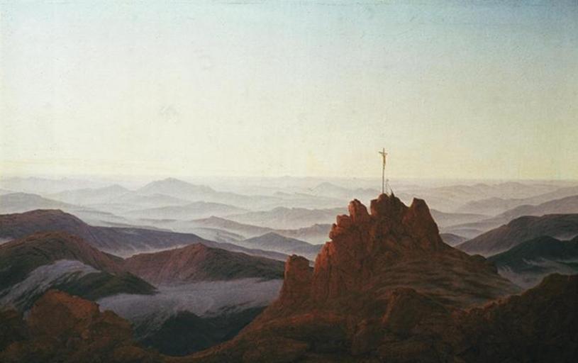 | Keywords: Morning in the Riesengebirge.jpg Artwork Creator Caspar David Friedrich c 1810/11 Oil on canvas cm 108 170 Alte Nationalgalerie NG 10/85 02531365 object history Provenance 1812 durch Friedrich Wilhelm III aus der Berliner Akademie-Ausstellung erworben; bis 1837 im Palais des Königs Unter den Linden 1837-44 im Neuen Palais in Potsdam 1844-65 im Schloß Bellevue später im Schloß Wiesbaden; nach 1930 im Berliner Stadtschloß; seit 1957 Eigentum der SMPK Found on Internet PD-old-100 DEFAULTSORT Caspar David Friedrich Morgen im Riesengebirge Das Kreuz auf der Felsenspitze Gegend im Morgennebel mit einem Kruzifix 1810s paintings by Caspar David Friedrich Paintings by Caspar David Friedrich in the Nationalgalerie Paintings of crosses Mountains in art 1810 paintings |