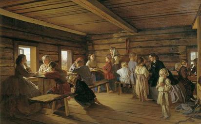 | Keywords: Morozov Selskaya Shkola.jpg en Alexander Iwanowitsch Morosow 1835-1904 Rural Free School ru Александ Иванович о озов 1835-1904 Сельская бесплатная школа Location Госуда ственная Т етьяковская гале ея <br> Dimensions 54 3x78 8 см <br> Web source http //www art-catalog ru/picture php id_picture 12516 <br> Technique Oil on canvas Creator Alexander Iwanowitsch Morosow 1865 PD-old-100 Alexander Ivanovich Morozov Paintings of Russian peasants | ||||