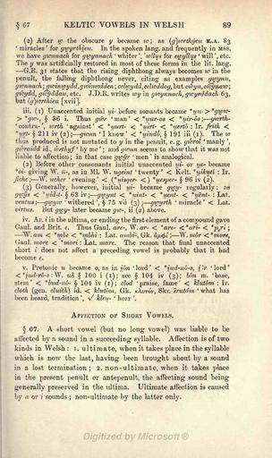 | Keywords: Morris-Jones Welsh Grammar 0089.png A scan of the book A Welsh Grammar Historical and Comparative by John Morris-Jones Morris-Jones_Welsh_Grammar_ png 0088 0090 http //www archive org/details/welshgrammarhist00joneuoft 1913 John Morris-Jones 1864 “1929 Author died more than 70 years ago - public domain PD-old Welsh Grammar by John Morris-Jones |
