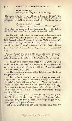 | Keywords: Morris-Jones Welsh Grammar 0105.png A scan of the book A Welsh Grammar Historical and Comparative by John Morris-Jones Morris-Jones_Welsh_Grammar_ png 0104 0106 http //www archive org/details/welshgrammarhist00joneuoft 1913 John Morris-Jones 1864 “1929 Author died more than 70 years ago - public domain PD-old Welsh Grammar by John Morris-Jones |