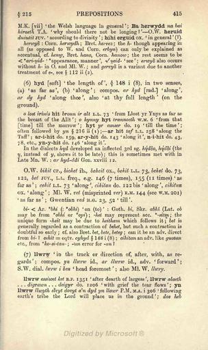 | Keywords: Morris-Jones Welsh Grammar 0415.png A scan of the book A Welsh Grammar Historical and Comparative by John Morris-Jones Morris-Jones_Welsh_Grammar_ png 0414 0416 http //www archive org/details/welshgrammarhist00joneuoft 1913 John Morris-Jones 1864 “1929 Author died more than 70 years ago - public domain PD-old Welsh Grammar by John Morris-Jones |