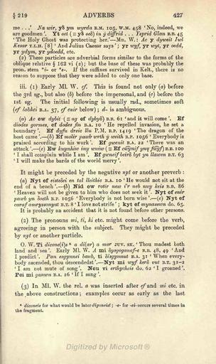 | Keywords: Morris-Jones Welsh Grammar 0427.png A scan of the book A Welsh Grammar Historical and Comparative by John Morris-Jones Morris-Jones_Welsh_Grammar_ png 0426 0428 http //www archive org/details/welshgrammarhist00joneuoft 1913 John Morris-Jones 1864 “1929 Author died more than 70 years ago - public domain PD-old Welsh Grammar by John Morris-Jones |