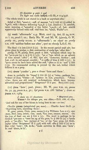 | Keywords: Morris-Jones Welsh Grammar 0433.png A scan of the book A Welsh Grammar Historical and Comparative by John Morris-Jones Morris-Jones_Welsh_Grammar_ png 0432 0434 http //www archive org/details/welshgrammarhist00joneuoft 1913 John Morris-Jones 1864 “1929 Author died more than 70 years ago - public domain PD-old Welsh Grammar by John Morris-Jones |
