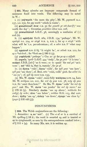 | Keywords: Morris-Jones Welsh Grammar 0440.png A scan of the book A Welsh Grammar Historical and Comparative by John Morris-Jones Morris-Jones_Welsh_Grammar_ png 0439 0441 http //www archive org/details/welshgrammarhist00joneuoft 1913 John Morris-Jones 1864 “1929 Author died more than 70 years ago - public domain PD-old Welsh Grammar by John Morris-Jones |