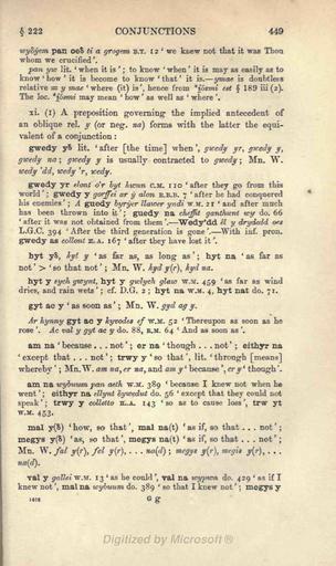 | Keywords: Morris-Jones Welsh Grammar 0449.png A scan of the book A Welsh Grammar Historical and Comparative by John Morris-Jones Morris-Jones_Welsh_Grammar_ png 0448 0450 http //www archive org/details/welshgrammarhist00joneuoft 1913 John Morris-Jones 1864 “1929 Author died more than 70 years ago - public domain PD-old Welsh Grammar by John Morris-Jones |