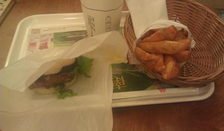 | Keywords: Mos Rice Burger sold in Taiwan.jpg en A Mos set meal sold in Taiwan it contains a vegetarian-edible king oyster mushroom rice burge fried chips and a cup of drink zh-tw 臺灣摩斯套餐,它包含了 鮑菇珍珠堡 黃金脆薯與 飲料 2013-04-28 00 58 32 own K1234567890y 25 113808333333 121 51415555556 cc-zero Uploaded with UploadWizard Cuisine of Taiwan Foods of fast food restaurants Rice burgers |