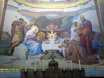 Keywords: Mosaic in the in the Rosary Basilica, Lourdes 2.JPG Mosaic in the Basilica Own 2007-06-01 Bobbacon Chapel of the Nativity Rosary Basilica