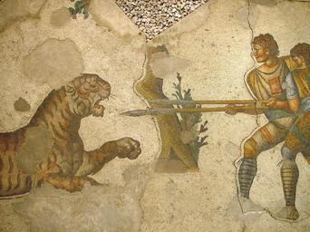 | Keywords: Mosaic museum Istanbul 2007 012.jpg Artwork en Floor-mosaik fragment en Mosaic en Istanbul place of creation en Turkey Byzantine en Great Palace en School of Konstantinopel Istanbul Own en 5th century Byzantine mosaic artist from the 5th century Other versions Great Palace Mosaic Museum Mosaics of tigers Tiger hunts in art |