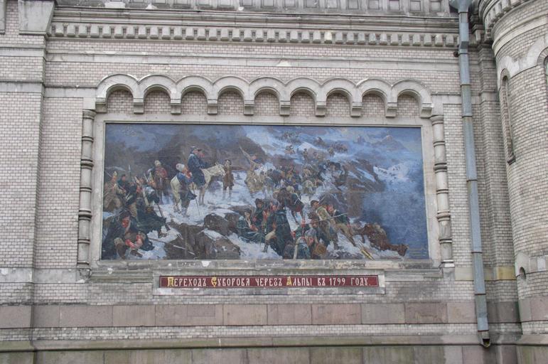 Keywords: Mosaic picture 2 on facade of Suvorov's museum (Saint Petersburg).jpg The mosaic picture Suvorov's march over Alps in 1799 on facade of Suvorov's museum in Saint Petersburg 1903-1904 озаичная ка тина «Пе еход Суво ова че ез Альпы в 1799 году» мозаист Е асленников по эскизу художника А Попова на фасаде музея Суво ова в Санкт-Пете бу ге 1903-1904 2006-10-30 own Photograph by Sergey kudryavtsev Original artist unknown possibly Alexander von Hohen ;Painting FoP-Russia ;Photograph Suvorov's museum Saint Petersburg Alexey Popov 2006 in Saint Petersburg |