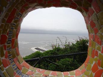 Keywords: mosaic round hole sea water view window