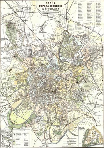 | Keywords: Moscow map 1912.jpg ru Под обная ка та осквы 1912 г с указанием названий улиц г аниц го ода и п иго одов 24 полицейских частей и 56 судебно-ми овых участков отдельные таблицы п иго одных де евень и слобод т анспо тных магист алей мостов линий па оходств и па оходных п истаней па ков и скве ов кладбищ асштаб 250 саж на англ дюйм 1912 http //nnm me/blogs/SkyReadyAll/staraya-karta-moskvy-1912-jpeg/ Коллектив това ищества А С Суво ина other versions Custom license marker 2015 04 18 PD-RusEmpire Uploaded with UploadWizard Maps of Moscow 1912 in Moscow 1912 maps of Russia Suvorin |