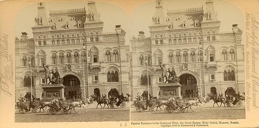| Keywords: Moscow, Russia. — Stereo card 06.jpg  Central Entrance to the Gistinnoi Dvor the Great Bazaar Kitai Gorod Moscow Russia Цент альный Вход в Гостиный дво Большой Рынок и Китай го од  осква Россия turn of the century 20 http //unrealalex livejournal com unknown PD-old Stereo cards of Russia Images uploaded by Steven Pavlov from various sources |