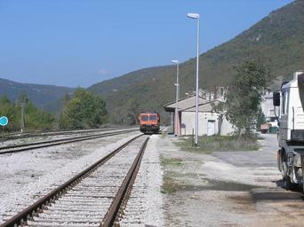 Keywords: Most Raša railway station (1).JPG English 7122 series train Kalmar Verkstad Y1 in Most Raša station Croatia<br>Hrvatski motorni vlak serije 7122 u kolodvoru Most Raša Hrvatska Own 2007-10-07 Orlovic HŽ Class 7122 Most Raša train station