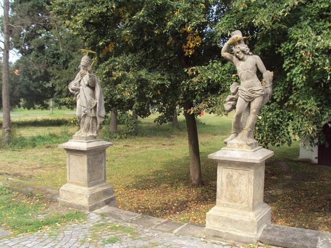 Keywords: Mostecká E.JPG cs Sochy svatého Floriána a Šebestiány v Mostecké ulici Zákupy own Zákupák 2012-09-02 Statues in Zákupy Mostecká Zákupy Fabianus Statues of Saint Sebastian in the Czech Republic
